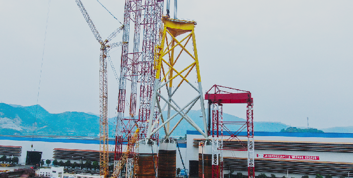 長樂外海海上風電場C區(qū)項目位于福州市長樂區(qū)東部海域、閩江口南岸,場址距離長 樂海岸線31千米~50千米海域,平均水深37米~45 米。福建船政承接該項目25套吸 力式導(dǎo)管架制作工程,其中單套三筒導(dǎo)管架高度近百米,底部最大尺寸超40米,單套導(dǎo)管 架最大重量約1200噸。
